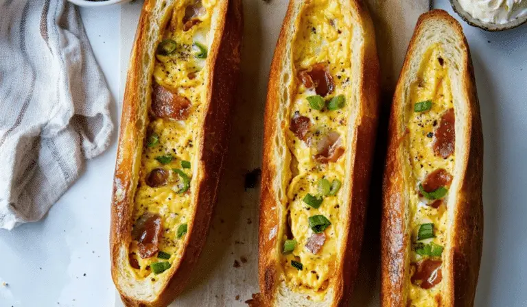 The concept behind Baked Egg Boats is as straightforward as it is brilliant. The use of fresh, crusty baguettes creates a vessel for a filling that’s soft, creamy, and packed with flavor. You can enjoy them fresh out of the oven, or store them ahead of time for an effortless breakfast or snack. Whether you’re preparing them for a weekend brunch, a holiday gathering, or a quick weekday treat, Baked Egg Boats are a showstopper that requires minimal effort for maximum impact. Let’s dive into the details and discover how to create this culinary masterpiece.