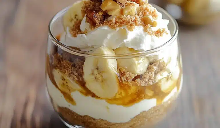 This Banana’s Foster Banana Pudding is ideal for novice cooks who want a dessert that’s both impressive and simple. The process is straightforward, and with just a few key ingredients, you’ll create something that feels much more complex than it really is. Whether you’re preparing for a dinner party or just a weekend treat, you won’t spend hours in the kitchen. The total prep time is only 30 minutes—perfect for busy cooks. Plus, it’s a dessert that’s universally loved, which makes it an excellent choice for any occasion. If you’re someone who’s not too confident in the kitchen but still wants to create something extraordinary, this recipe is a wonderful starting point. The layers of flavor in this dish are remarkable. First, the buttery graham cracker crust provides the perfect base with its slight crunch. Next, the banana pudding layer adds a rich, velvety sweetness, topped off with a fluffy whipped cream layer that melts in your mouth. The banana’s foster topping brings the show-stopping element of caramelized bananas in a decadent sauce, making this dessert a complete sensory experience. The great thing is that the complexity of the flavors comes with minimal effort, making it an ideal recipe for beginners. Now, let’s break down the ingredients and preparation steps for this easy yet luxurious treat.