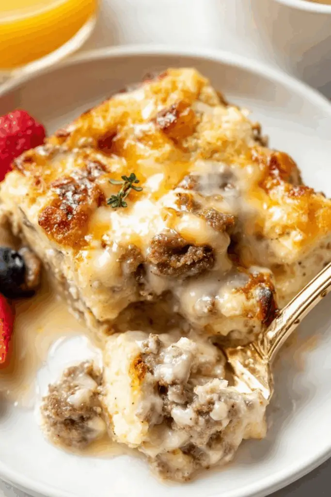 There’s a reason Biscuits And Gravy Breakfast Casserole shows up at potlucks, family gatherings, and holiday mornings. It’s easy to prep, customizable, and reheats beautifully. Whether you’re making it ahead like the everything bagel make-ahead breakfast casserole or enjoying it fresh out of the oven, this dish guarantees smiles around the table. Serve it alongside something sweet like blueberry cream cheese French toast casserole for a complete brunch spread.