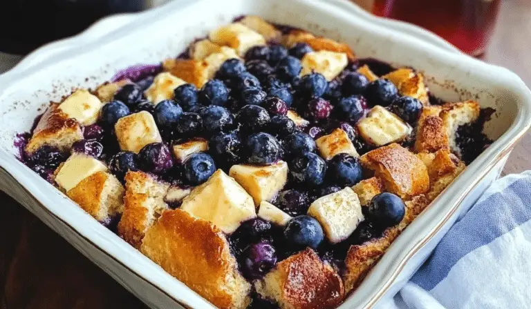 Whether you’re preparing it for a special brunch with friends and family or enjoying it as a cozy breakfast treat, Blueberry Cream Cheese French Toast Casserole is sure to impress. It’s easy to make, packed with flavor, and guaranteed to satisfy your sweet tooth. The creamy, berry-filled casserole is a delightful way to start the day, and with its versatility, you can tailor it to your tastes or the season. Give this recipe a try, and you’ll have a new favorite breakfast dish that’s perfect for any occasion.