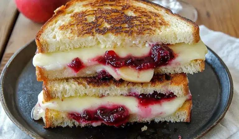 I remember the first time I had a truly gourmet grilled cheese sandwich. It wasn’t the simple cheddar on white bread I grew up with. This was at a charming little cafe, the kind with exposed brick walls and the aroma of freshly brewed coffee. I ordered the special of the day: a grilled cheese featuring brie, apple, and cranberry sauce. I was skeptical, to say the least. But one bite, and I was hooked! The creamy, slightly tangy brie, the crisp, sweet-tart apple slices, and the bright, tangy cranberry sauce all melted together in perfect harmony. It was a revelation! It was a far cry from the simple grilled cheese sandwiches I used to make as a kid, and it felt so much more sophisticated and satisfying. This Brie, Apple, and Cranberry Grilled Cheese recipe is perfect for beginner cooks because it takes a beloved classic and elevates it with gourmet flavors, but it’s still incredibly easy and quick to make. It’s a fantastic way to impress your family and friends with minimal effort, and it’s a perfect meal for any occasion, from a casual lunch to a cozy dinner or even a late-night snack.