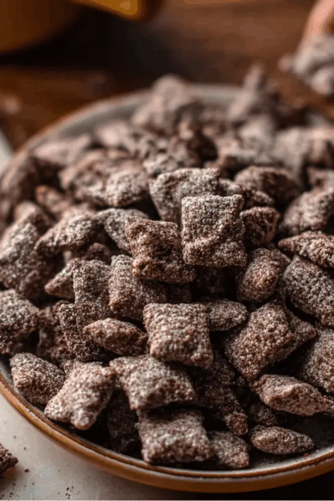Clumpy chow is a no-go. Always shake your mix in a large, sealable bag and coat it while the chocolate is still slightly warm but not too hot, or the mix will melt the sugar. Don’t skip the sifting step for the brownie mix—it helps prevent uneven coverage. And be careful not to overmix once the coating starts to dry. You want those perfect bites, not sticky clusters.