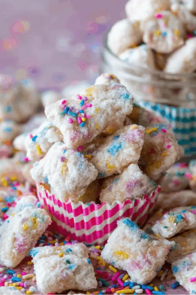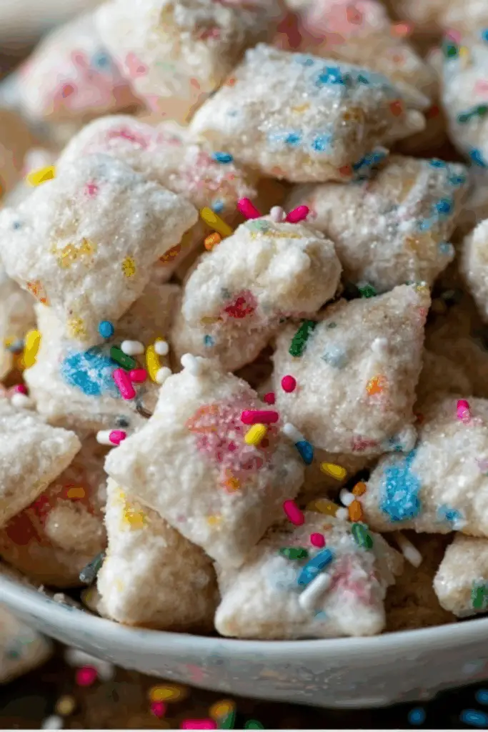 Don’t underestimate the power of sprinkles—they’re more than just decor. Sprinkles add texture and visual appeal, turning your Cake Batter Puppy Chow into something celebratory. Stick with jimmies or confetti-style over nonpareils, which can bleed color.