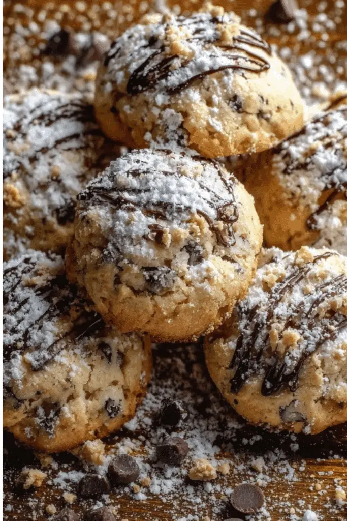 Once they’ve cooled slightly, sprinkle extra cannoli shell crumbs and powdered sugar. You’re not just baking cookies — you’re staging a dessert moment.