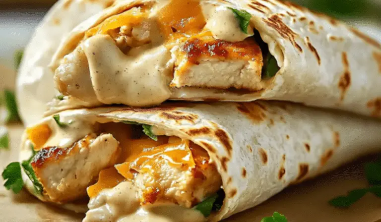 Cheesy Chicken Wraps are the ultimate quick and satisfying meal. Whether you’re looking for a simple weeknight dinner, a game day snack, or a meal prep option for busy lunches, this recipe has you covered. The combination of seasoned chicken, melty cheese, and creamy garlic sauce wrapped in a crispy tortilla is a winning formula that’s sure to please even the pickiest eaters.