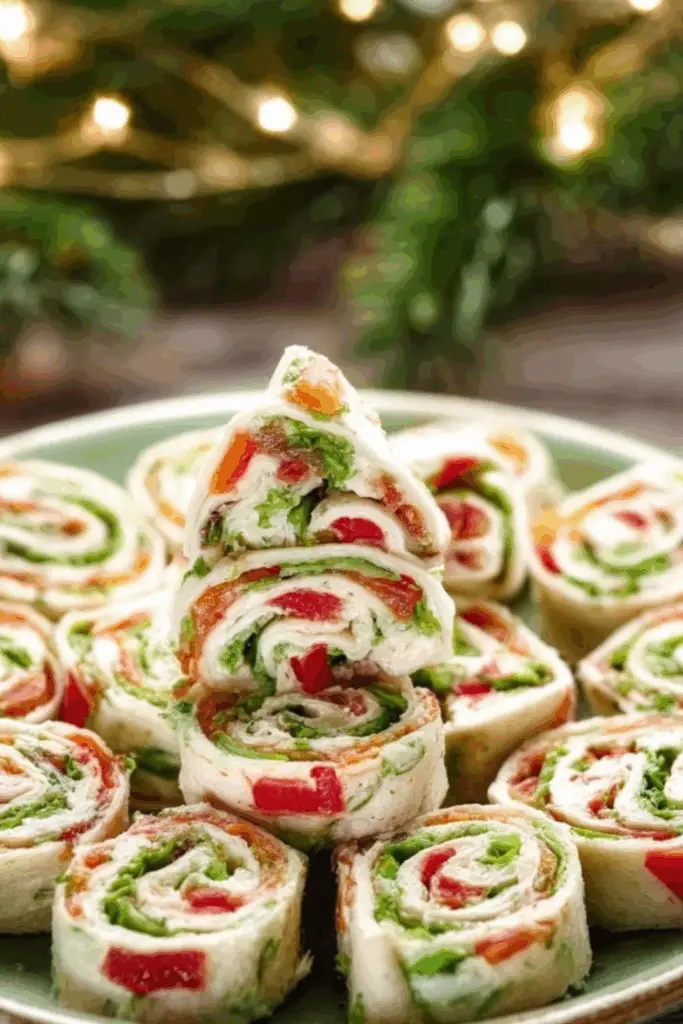 Christmas Pinwheels are festive, easy-to-make tortilla roll-ups filled with colorful vegetables and cream cheese—perfect for holiday parties.