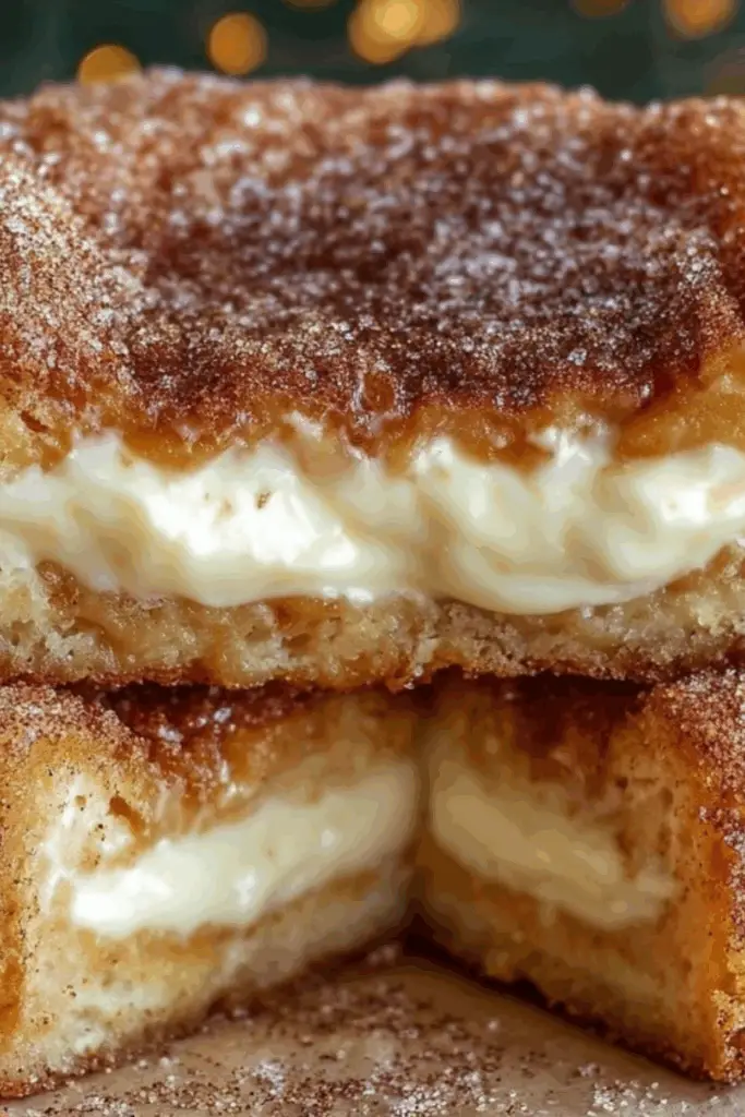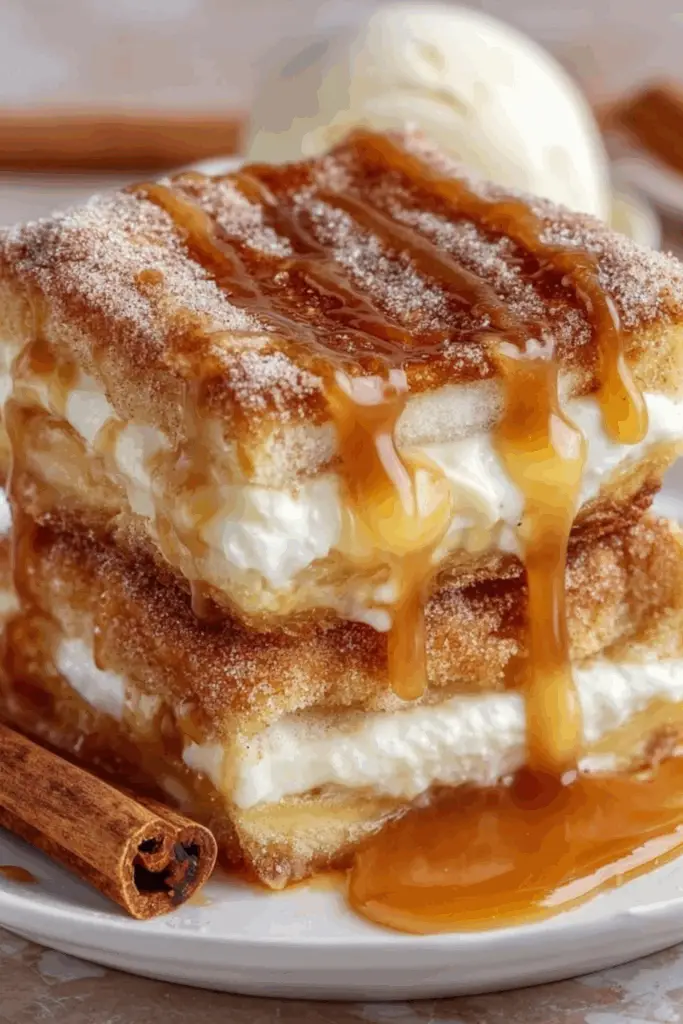 Churro Cheesecake blends cinnamon-sugar crunch with creamy cheesecake in one dreamy dessert square.