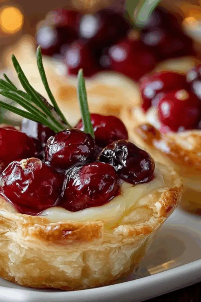 Cranberry and Brie Tartlets are festive mini appetizers made with buttery puff pastry, creamy Brie cheese, and tangy cranberry sauce—perfect for any holiday gathering.