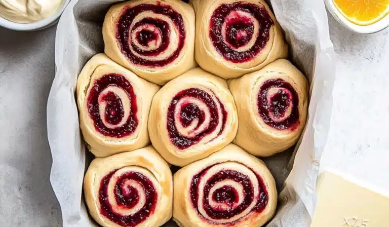 Imagine the warmth of freshly baked cinnamon rolls, infused with the tart sweetness of cranberries and the bright, zesty aroma of oranges. That’s the delightful experience of these Cranberry Orange Cinnamon Rolls. I remember the first time I made these. It was during the holiday season, and I wanted to create a special breakfast treat that would be both comforting and festive. The combination of cranberries and oranges was a revelation, adding a vibrant twist to the traditional cinnamon roll. The tartness of the cranberries balanced the sweetness of the dough and icing, while the orange zest added a refreshing citrus note that made them absolutely irresistible. This recipe is perfect for beginner bakers. While it involves working with a brioche dough, the steps are clearly outlined and easy to follow, making it a rewarding baking experience. The process of making the cranberry orange jam, shaping the rolls, and watching them rise is a fun and engaging activity. Plus, the final product is a visually stunning and delicious treat that’s sure to impress your family and friends during the holidays or any special occasion.