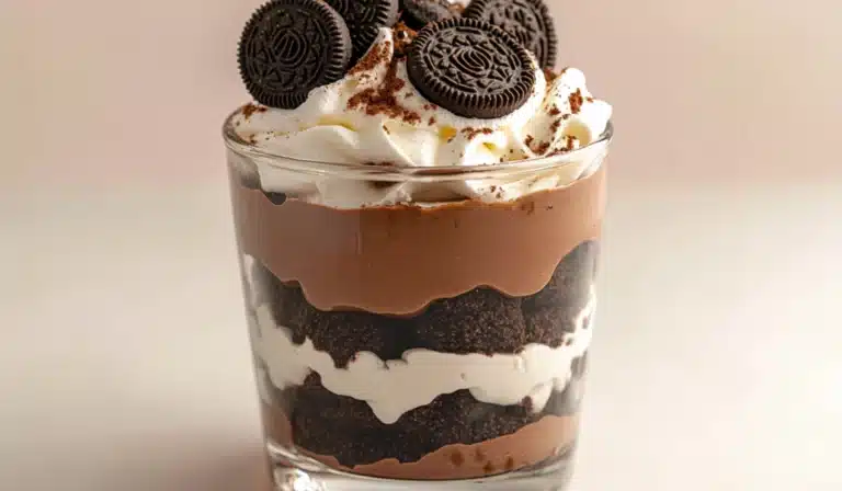 Craving a deliciously rich dessert that’s easy to make? This creamy chocolate parfait is the answer! With layers of smooth chocolate mousse, airy whipped cream, and crunchy Oreo crumbs, it’s a no-bake treat that’s perfect for beginners. I remember making this for the first time—it’s quick, simple, and always a hit. Whether for a special occasion or a casual treat, this dessert will satisfy every chocolate lover’s craving!
