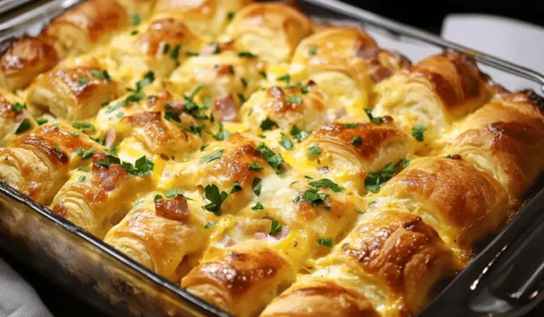 Crescent Roll Breakfast Casserole is a breakfast dish that will quickly become a favorite in your household. It combines the best elements of breakfast—flaky rolls, creamy cheese, savory ham, and a touch of spice—in one easy-to-make casserole. Whether you’re preparing it for a family breakfast or serving it at a special gathering, this dish is sure to impress. Its simplicity, versatility, and comforting flavors make it a go-to recipe for busy mornings or special occasions. So gather your ingredients, preheat the oven, and enjoy the delightful magic of Crescent Roll Breakfast Casserole—it’s the perfect way to start your day!
