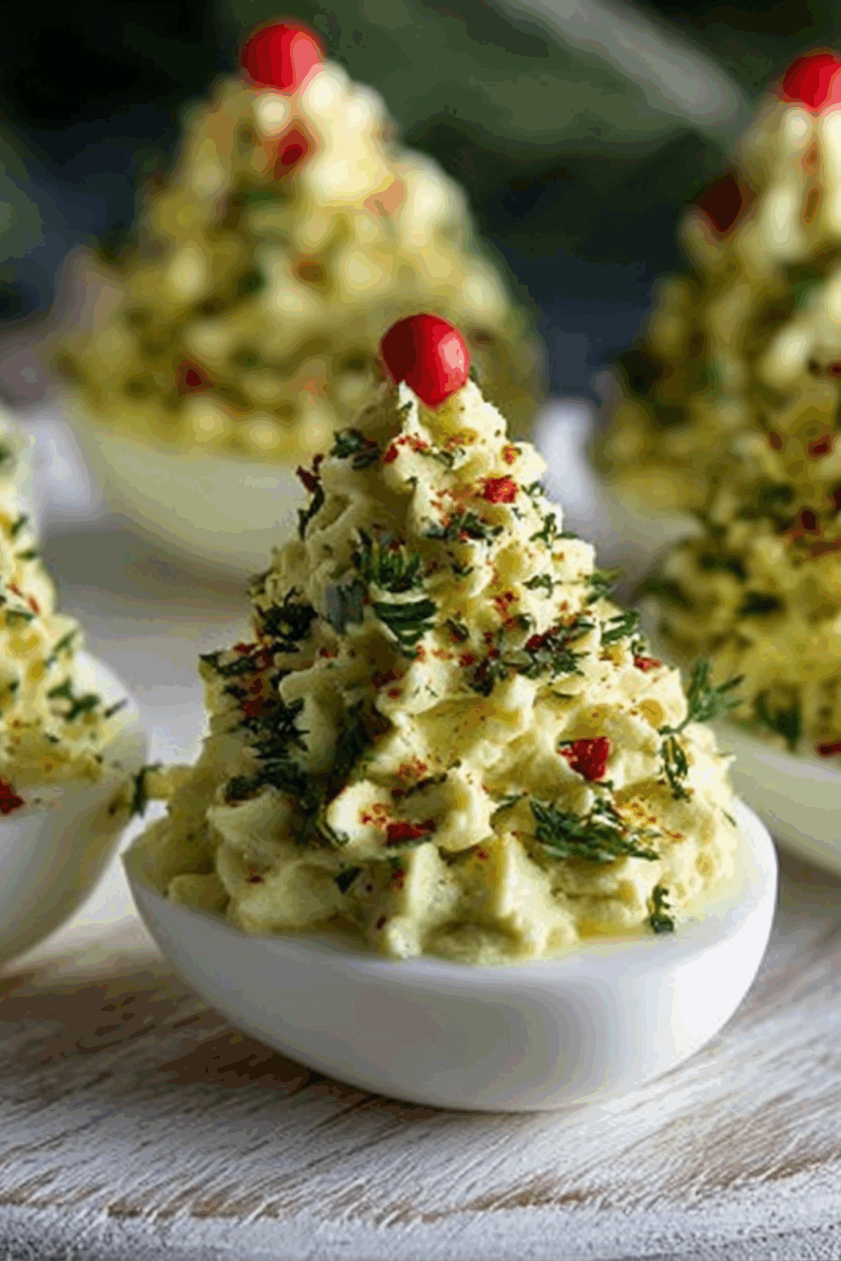 One Christmas Eve, I ran out of crackers for my cheese board. Desperate for a quick appetizer, I improvised by sprucing up a few deviled eggs. I piped the yolk mixture taller, chopped herbs to mimic tree foliage, and added red pepper flakes for sparkle. What started as a mistake turned into the star of the night.