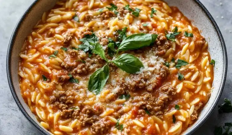 This Ground Beef Orzo is a simple, flavorful one-pan meal perfect for busy weeknights. Creamy tomato sauce, tender orzo, and savory ground beef make a satisfying dinner.