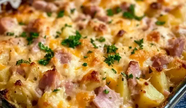 I remember the first time I made Ham and Potato Casserole. It was a chilly evening, and I wanted to create a comforting meal that would warm everyone up. The combination of creamy potatoes, savory ham, and melted cheese filled the kitchen with an irresistible aroma. The dish was an instant hit, and it’s become a go-to recipe for family gatherings and cozy dinners. This Ham and Potato Casserole is perfect for beginners because it’s incredibly easy to assemble and requires minimal cooking skills. It’s a great way to use leftover ham and create a satisfying meal that everyone will love. Plus, it’s a budget-friendly option that can feed a crowd. Imagine scooping up a warm, bubbly casserole with layers of tender potatoes, flavorful ham, and a creamy, cheesy sauce. It’s a comforting and satisfying dish that’s perfect for any occasion. This recipe is ideal for those looking for a simple, delicious, and crowd-pleasing meal. Let’s dive into this simple and delicious recipe!