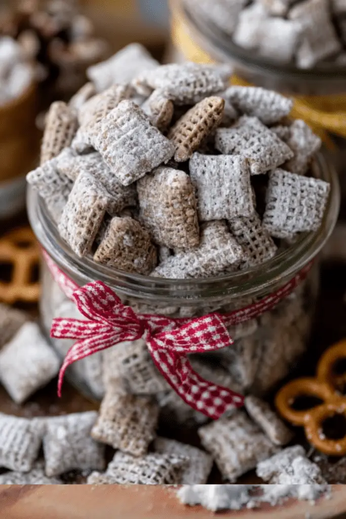 Because it looks as festive as it tastes, Homemade Muddy Buddies Chex Mix makes a great gift. Use mason jars, themed bags, or mini tins. Add a handwritten label or festive ribbon, and you’ve got a budget-friendly, heartwarming present.