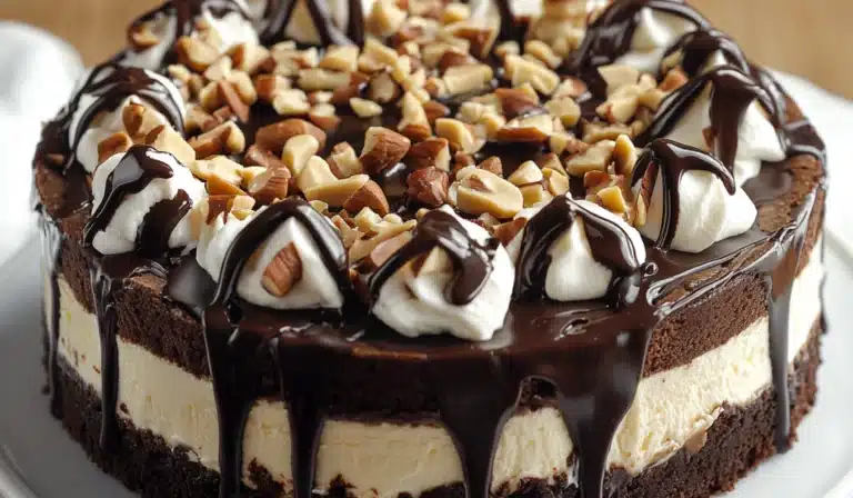If you’re new to baking, this is the perfect recipe to try your hand at layering different textures and flavors without overwhelming yourself. It’s a great way to learn, and even better, it’s guaranteed to delight anyone who gets a slice. With a brownie base, cheesecake layer, chocolate ganache, and whipped cream topping, this dessert has everything you could possibly want in one delicious package. What’s even better is how versatile this recipe is—you can play around with the ingredients to make it your own. Whether you want to swap out walnuts for another nut, use a different type of chocolate for the ganache, or top it with fruit instead of peanuts, the possibilities are endless. This dessert is a showstopper in every sense of the word. From its rich flavors to its impressive presentation, it’s the kind of dessert that will have your guests oohing and aahing before they even take a bite. If you’re looking for a dessert that combines elegance with indulgence, this Hot Fudge Sundae Brownie Cheesecake is the ultimate choice. And the best part? It’s surprisingly simple, even for those who are still getting comfortable in the kitchen. Let’s dive into how you can create this dessert at home and impress everyone with your baking skills.