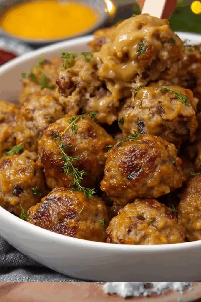 These Stuffing Sausage Balls are the ultimate crowd-pleaser—savory, cheesy, and perfect for any occasion. Serve them warm with your favorite dip!