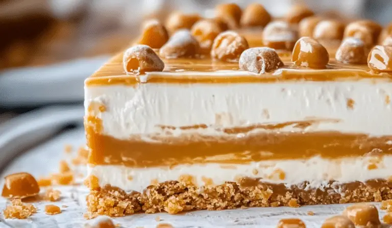 The crust is the foundation of the dessert, and in the case of Butterscotch Delight, it’s a simple yet essential element that adds texture and flavor. The graham cracker crumbs, combined with melted butter and sugar, form a crisp, golden base that provides a satisfying crunch with every bite. It’s not overly sweet but complements the richness of the layers above it perfectly. The crust is baked until it’s slightly golden and firm, creating a solid foundation that can support the layers of creamy goodness that will be added later. - The Cheesecake Layer: Creamy and Velvety