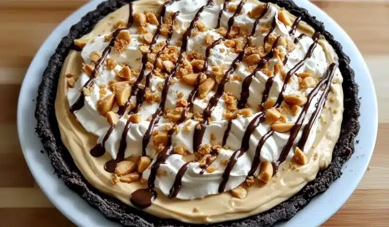 I still remember the first time I made this pie for a family gathering. I was a beginner baker at the time, and while I had always enjoyed baking, I had never tried making a pie from scratch before. I was drawn to this recipe because it was straightforward, and I had all the ingredients on hand. To my surprise, the pie was a huge hit! It was so easy to make, and the results were beyond satisfying. The creamy peanut butter filling combined with the crunchy Oreo crust made for a texture that was both smooth and satisfying. The chocolate and peanut topping added an extra layer of indulgence that I couldn’t resist. From that moment on, this Peanut Butter Pie became my go-to dessert, and it’s easy to see why.