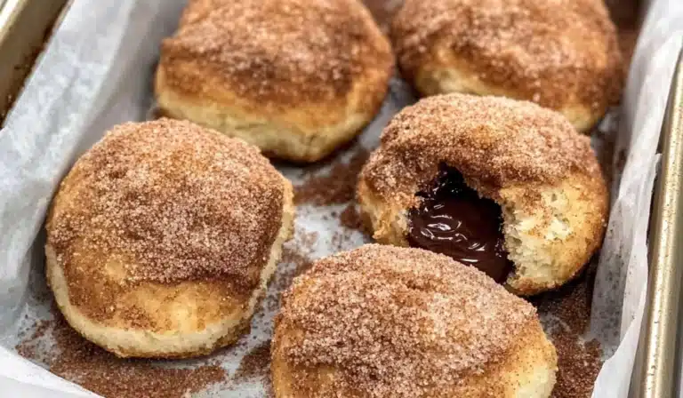 This recipe is also ideal if you’re short on time but still want to make something homemade. Imagine biting into a warm, golden-brown biscuit with a gooey, sweet Nutella center, all covered in a cinnamon-sugar coating—what could be better? For those looking for a healthier alternative to deep-fried churros, these baked churro bombs are the answer. Baking the churro bombs instead of frying them means you can enjoy that crispy, churro-like texture with fewer calories and less oil. And with just a few simple steps, you’ll be able to make this delicious treat in no time at all. The best part? They’re versatile enough for any occasion, whether it’s a family gathering, a weekend snack, or a special dessert after dinner.
