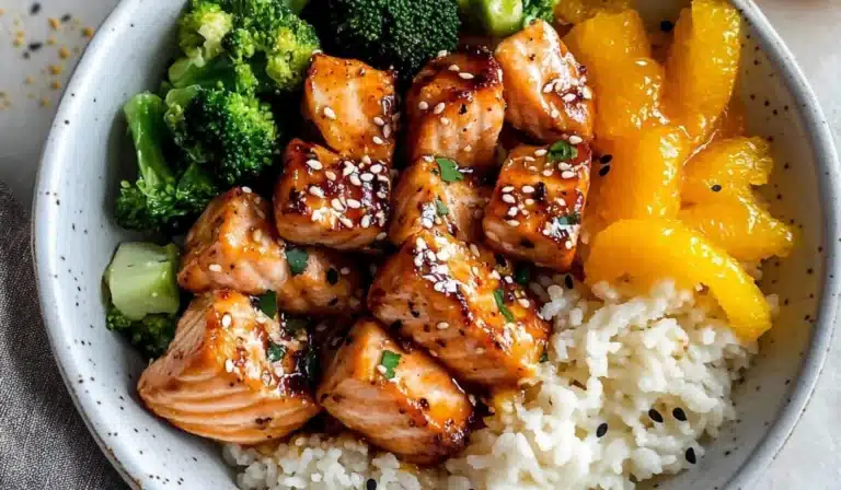 - Assemble and Serve: Assemble your bowls with a base of cooked rice, then add the cooked broccoli and the pan-fried orange salmon. Drizzle with the remaining thickened orange sauce. Enjoy! Garnish with fresh herbs, such as chopped green onions or cilantro, for a pop of color and added flavor.