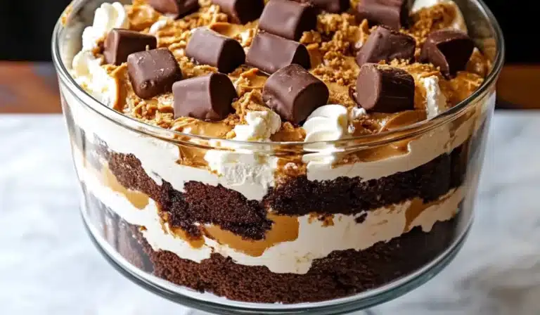 If you love the classic combo of chocolate and peanut butter, this Peanut Butter Cup Brownie Trifle is about to become your new favorite dessert. With layers of fudgy brownies, creamy peanut butter pudding, and crunchy Reese’s cups, it’s a decadent treat that’s easy to make and perfect for beginner cooks. Whether you’re hosting a party or just craving something sweet, this trifle is sure to impress with minimal effort and maximum flavor!