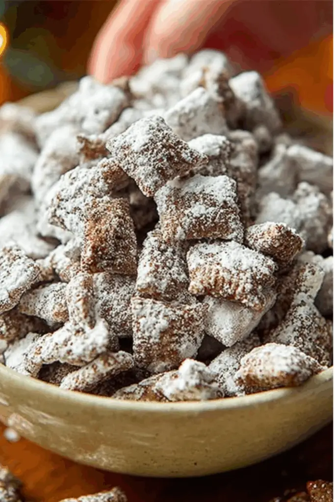 One of the biggest mistakes when making Puppy Chow Recipe aka Muddy Buddies is rushing the cooling process. If the chocolate mix is too warm, the powdered sugar melts instead of coating. Let the mix cool slightly before shaking with sugar in a sealed bag or container.
