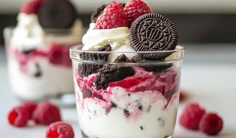 Creamy, crunchy, and bursting with fruity goodness, this Raspberry Oreo Dessert is the perfect no-bake indulgence. In just 20 minutes, you’ll have a rich mascarpone cream layered with crisp Oreo crumbles and tangy raspberries. It’s effortless, beginner-friendly, and completely irresistible. Whether for a gathering or a solo treat, this dessert delivers maximum flavor with minimal effort!