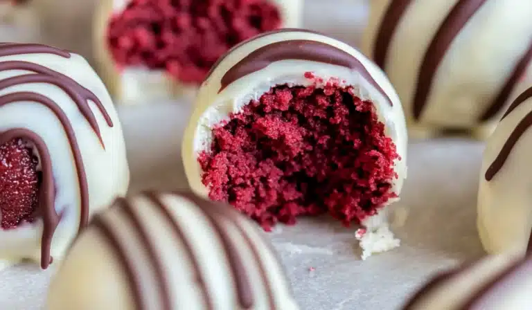 I still remember the first time I made Red Velvet Truffles. It was for a Valentine’s Day party, and I was looking for something that was both festive and easy to prepare. When I stumbled across this recipe, I was instantly drawn to how simple yet elegant the truffles looked. I was a bit nervous at first since I was still getting my bearings in the kitchen, but I was surprised at how quickly they came together. The rich flavor of the red velvet cake, paired with the creamy white chocolate and dark chocolate drizzle, had everyone asking for the recipe. What I didn’t expect was how much of an impact these little bites would make. So, if you’re ready to fall in love with a dessert that’s just as fun to make as it is to eat, let’s dive into this easy Red Velvet Truffle recipe!
