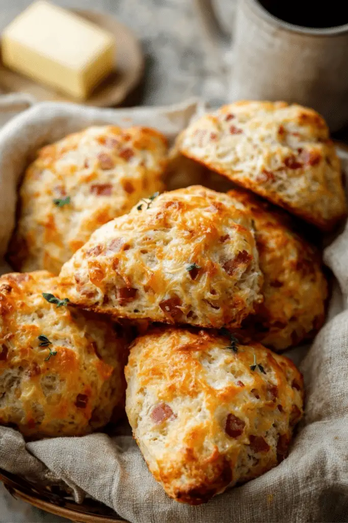 Flaky and golden savory ham and cheese scones perfect for breakfast or brunch.