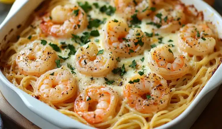 A delicious pasta bake featuring succulent shrimp, garlic, lemon, and a creamy cheese sauce. Perfect for beginner cooks, this recipe is easy, flavorful, and comforting.