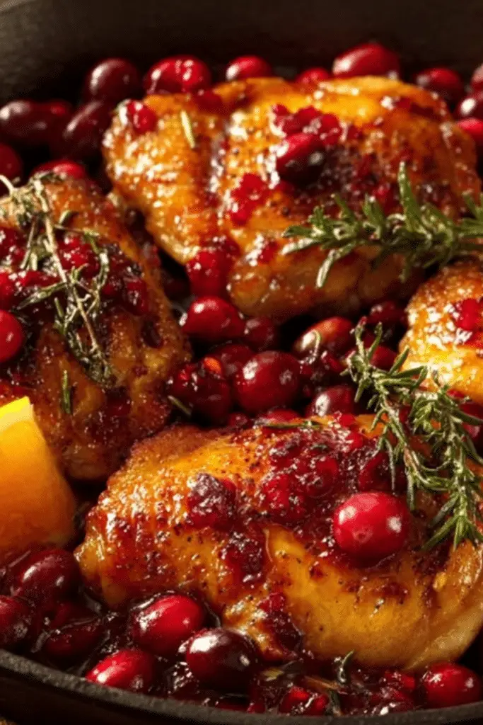A sweet and savory one-skillet chicken dish with tart cranberries and fresh orange flavors. Perfect for cozy dinners and holiday tables.