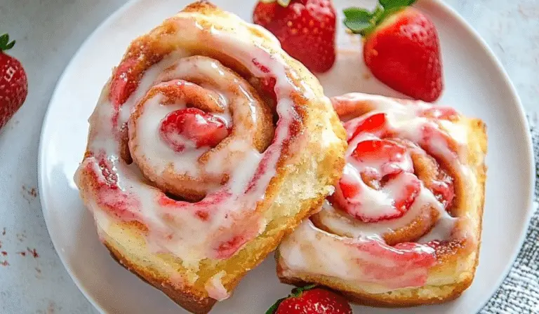 Strawberry cinnamon rolls are a delightful twist on a classic favorite, combining the familiar flavors of cinnamon rolls with the sweetness and freshness of strawberries. The soft, fluffy dough, jammy strawberry filling, and cinnamon glaze come together to create a truly indulgent treat that’s perfect for any occasion. Whether you’re baking these rolls for a special brunch, a weekend breakfast, or just as a sweet treat to share, they’re sure to impress everyone who tastes them. With simple ingredients and an easy-to-follow process, these strawberry cinnamon rolls are a must-try recipe that will quickly become a favorite in your baking repertoire. So why wait? Gather your ingredients, roll up your sleeves, and treat yourself to the delightful goodness of strawberry cinnamon rolls today!