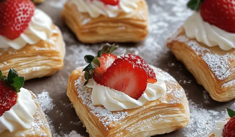 Strawberry cream puffs are the epitome of indulgence, combining the crisp and flaky texture of puff pastry with the sweet and creamy goodness of whipped cream and strawberries. Whether you’re celebrating a special occasion, preparing a dessert for loved ones, or simply satisfying your sweet tooth, these delightful pastries never fail to impress. This recipe allows you to craft beautifully shaped cream puffs, such as hearts for a romantic twist or rectangles for a more classic look. Each bite bursts with the rich flavors of strawberry jam, cocoa-infused whipped cream, and a drizzle of chocolate, creating a dessert that’s as stunning as it is delicious. Let’s dive into how to create these irresistible strawberry cream puffs, step by step. Whether you’re a seasoned baker or just starting, this recipe will guide you through the process with ease.