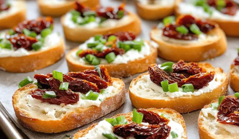 If you’re looking for a flavorful, easy-to-make appetizer that captures the essence of Mediterranean cuisine, Sun-Dried Tomato Bruschetta is the dish you need. This delightful combination of creamy, tangy cheeses and the rich, intense flavor of sun-dried tomatoes, all nestled on a crunchy, golden-brown baguette slice, is a winning recipe that is sure to please any crowd. Whether you are preparing for a family gathering, a holiday party, or a casual dinner with friends, this bruschetta offers an enticing mix of textures and flavors that are both simple and satisfying.